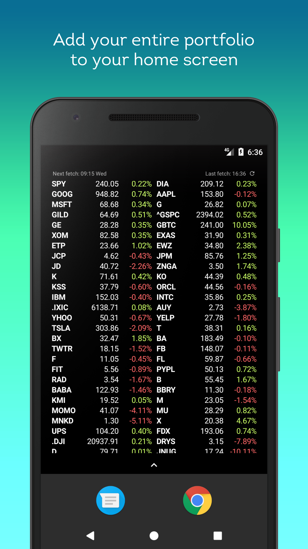 リサイズ可能なグリッドであなたの株ポートフォリオを表示するウィジェットです。リストはドラッグ&ドロップで並べ替え可能で、リストはエクスポートおよび再インポートできます。
